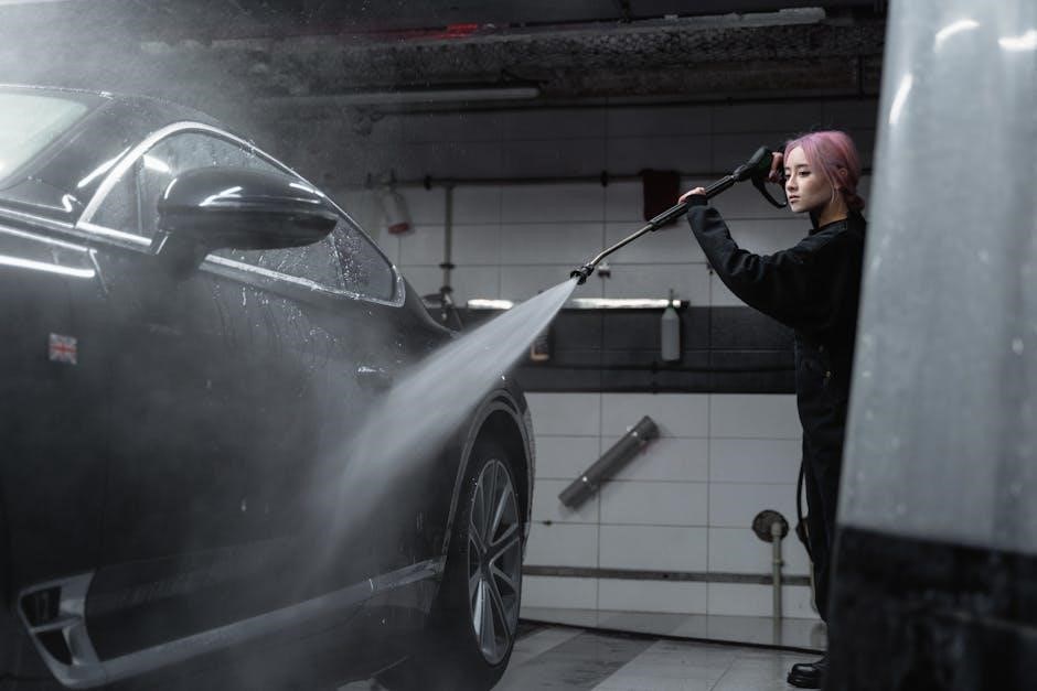 The RY141600 operator’s manual, available on ManualsLib, recommends using pump saver antifreeze. Pour this into the pump inlet and briefly run the washer to distribute it throughout the system. Store the unit in a dry, frost-free location. Failing to winterize can lead to cracked pumps and costly repairs, ensuring your pressure washer is ready for spring cleaning.